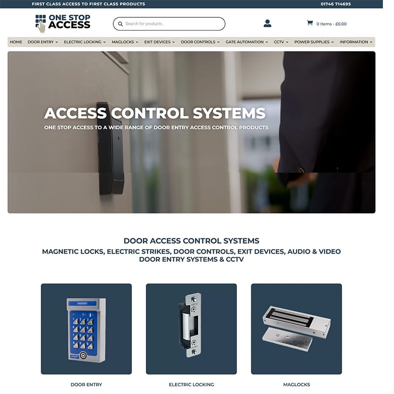 WooCommerce ecommerce website for One Stop Access selling door control systems throughout the UK.